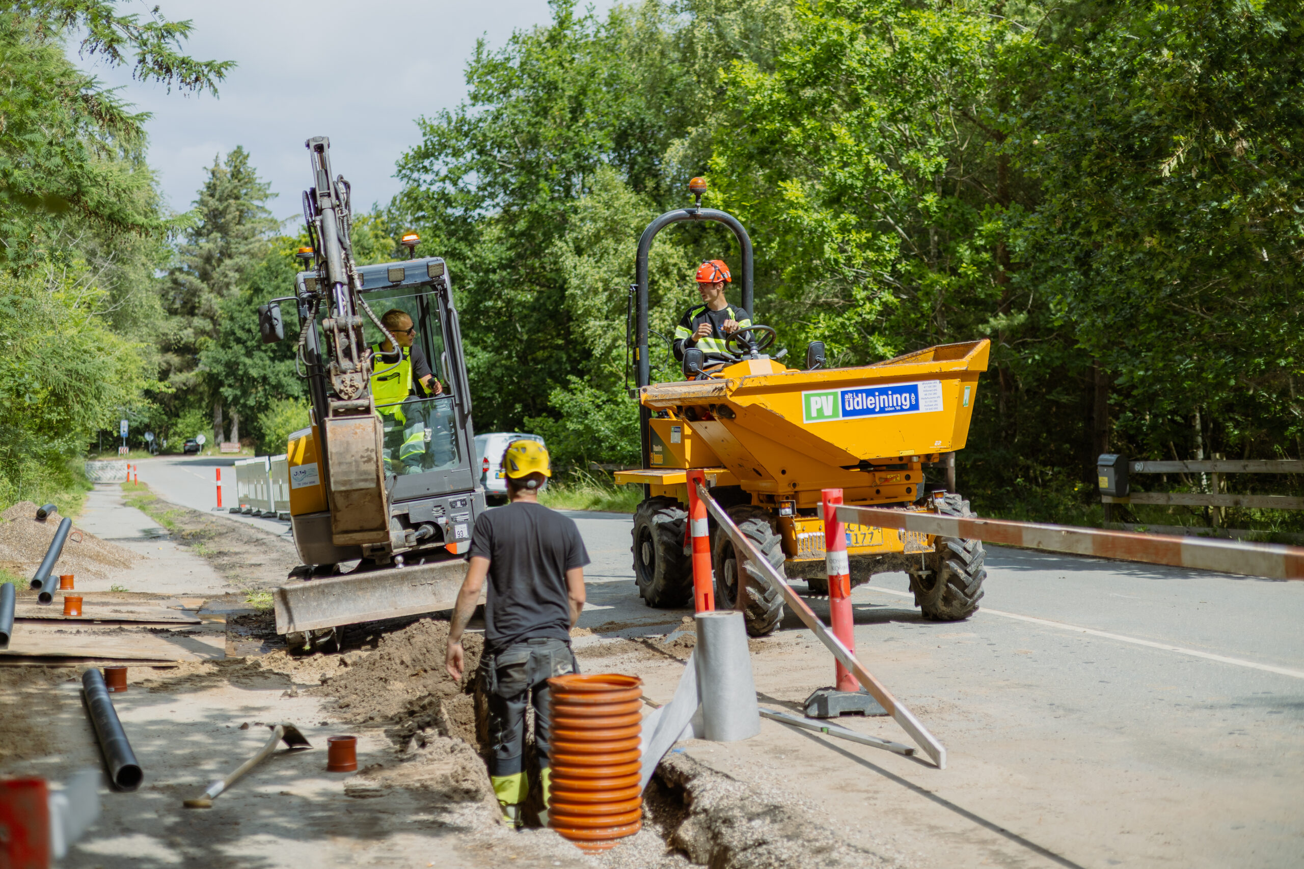Langs en strækning på cirka 200 meter har JAC etableret en drænkasse mellem vej og cykelsti, der opsamler og leder regnvandet væk, inden det skaber gener på overfladen. Løsningen sikrer en hurtig og stabil afvanding, selv ved kraftige regnskyl.