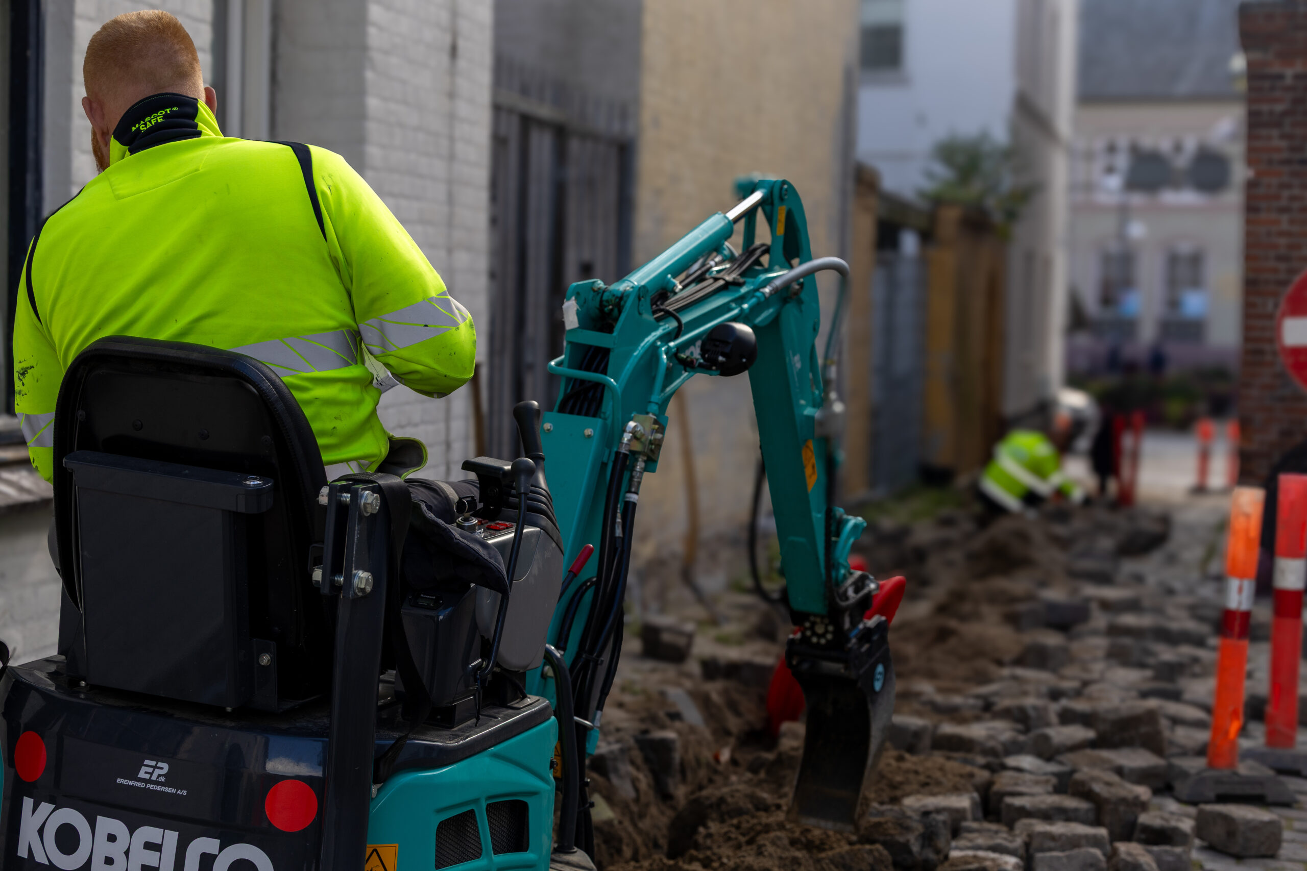 I blindestræde i Holbæk har JAC udført professionelt gravearbejde i forbindelse med etablering af nye lygtepæle. Opgaven omfattede udgravning til kabelføring, nedgravning af kabler og efterfølgende reetablering af den eksisterende gade, så området fremstår pænt og funktionelt efter endt arbejde.